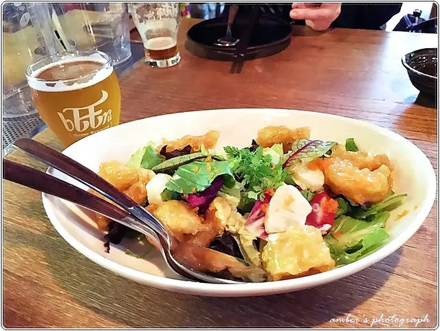 這道算是開胃前菜 清爽不膩 是使用了自釀的精釀啤酒和雞腿肉來醃製而成 微微的酒香味和軟嫩的肉質 非常適合一口沙拉搭配一口啤酒喔