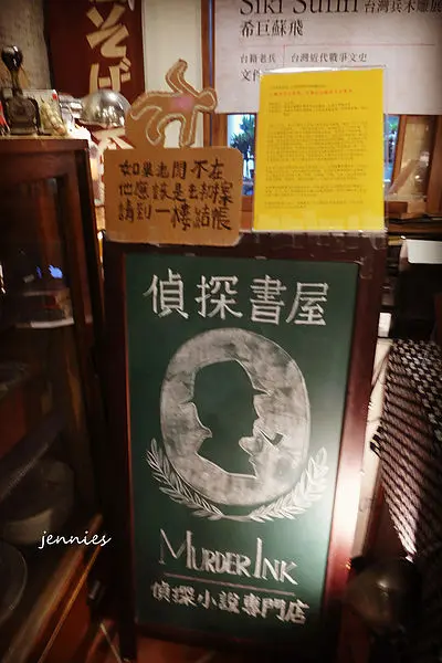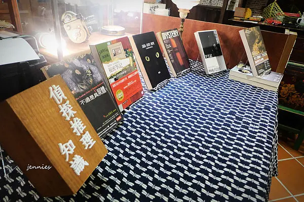 一樓是挑高的室內中庭,以咖啡販賣為主,順著樓梯走上二樓映入眼廉的是私人藏書閣以偵探小說為收藏,懷舊的復古風情讓思緒遁入了另一個時空裡慢慢蘊釀。