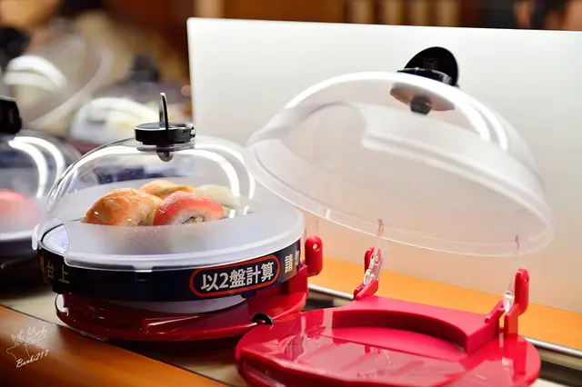 くら寿司(藏壽司 Kura Sushi)輸送帶上的迴轉壽司均有用壓克力罩蓋住,以確保衛生,拿取時不須先蓋,只要將盤子前端往上抬即可拿出(這個在一進入店內時,便有店員說明且詢問是否須練習)。壽司為40元一盤,特殊的會特別標示為兩盤計算,另外除了壽司外,在平板觸控螢幕見到的拉麵、炸物、甜點等也超過40元價格。