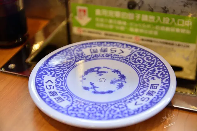 這些以兩盤計價的壽司,稍稍倒扣便可將盤子取出,將盤子放入回收口,而外面那圈只需放在桌上即可。