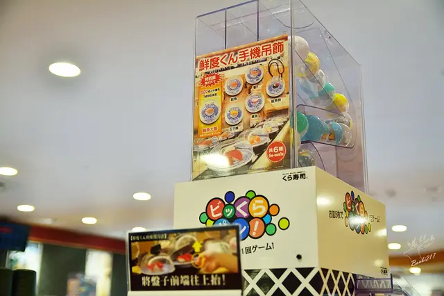 這是剛剛介紹的每投入五盤於回收口內,平板螢幕便會自行跳出抽獎影片(每次影片畫面不一樣),會有失敗(失敗便無獎品)與成功情形(成功便隨機抽到一款壽司手機吊飾)