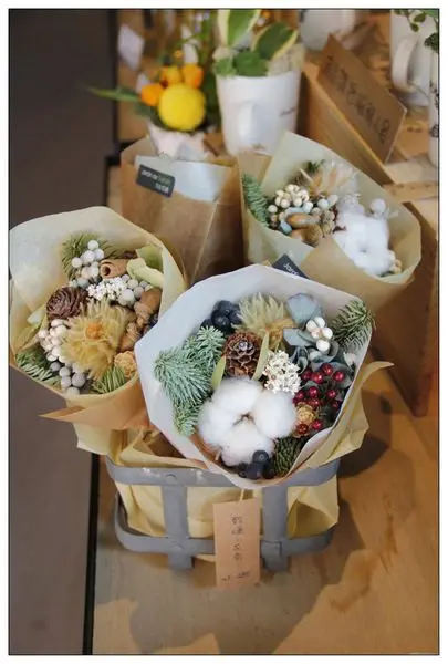 這些精緻的小盆栽和乾燥花束讓小菲和蔡老爺在這邊流連忘返~~