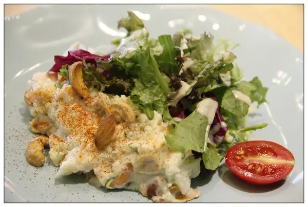 豐盛的馬鈴薯沙拉裡~用的是新鮮馬鈴薯泥加入法國有機認證100%芥花籽特調美乃滋