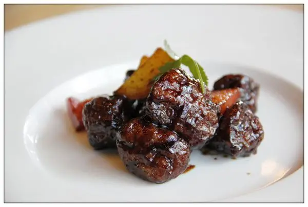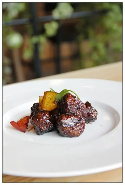這道糖醋里肌採用的是日本非基因改造大豆製成的素肉~吃起來很有嚼勁~