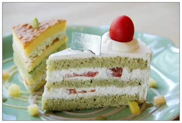綠色的蛋糕體是用地瓜葉做成的海綿蛋糕~