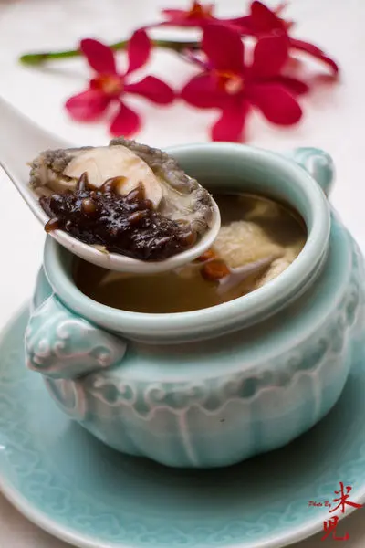 凌雲赤參花雕佛跳牆,西華怡園的單盅佛跳牆本來就很受歡迎,這次更加入來自關西的頂級刺參與南非活鮑,還有花膠等頂級食材,注入鮮美的高湯、淋上少許陳年紹興慢火燉成,湯喝起來膠腴不膩,濃郁中卻見清爽,滿滿的好料讓人幾乎一盅就飽足了!