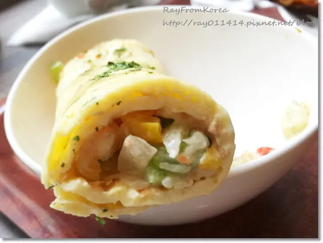 不過這蛋捲有點酸辣感,這口感配起蛋捲很好吃呢~