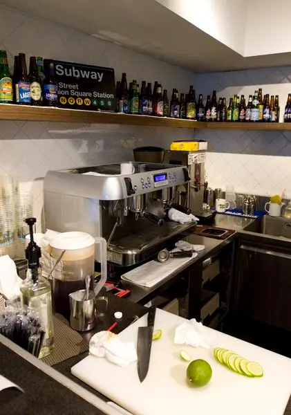 在座位上填完菜單後拿至角落櫃臺結帳,可刷卡,一旁為製作飲料的區塊 -