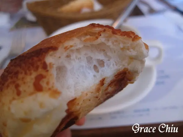 麵包~雖然菜單上寫是附黑麥麵包,但這回附上的應該是乾酪麵包?麵包烤的熱呼呼,外層帶點酥脆,內層細緻鬆軟.