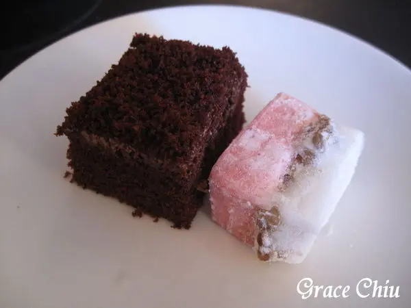 這款俄羅斯軟糖源自當年沙皇御用點心,也是已故蔣方良女士喜歡的家鄉味甜點,目前在台灣僅有明星西點一家製作,之前只有吃過原味,這次到店內用餐才知道還有出了別種口味,餐後附上的是蔓越莓俄羅斯軟糖,雖說是以軟糖命名但吃起來比較像是棉花糖,不過口感比棉花糖要來的厚實不少,軟糖中心有一層核桃,整體嚼起來軟軟香香,是一款特別的點心,除了常溫食用外店家也有建議冷凍後食用(不需解凍),在家試過冷凍一會兒的軟糖,吃起來多了些Q勁.