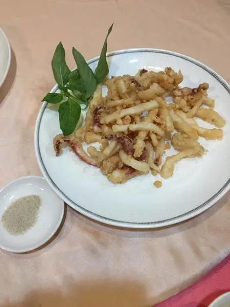 第四道是蒜酥中卷絲(450元),這道菜雖然看起來很普通,可是小編覺得很特別地是,中卷的原汁原味都被包裹在酥炸的外衣下保留地很完整,吃起來則是軟硬適中,不會有很難咬得動的問題。