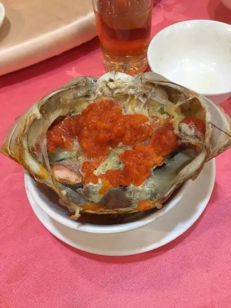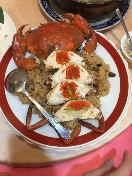 這道紅蟳米糕(時價─當天是1800元)也是要預約的料理,剛好服務生說還能做一份的量,我們當然就立刻點來吃吃看。料理這道菜時應該加了蠻多的酒,紅蟳吃起來的酒味蠻重的,小編不太喜歡,不過家人們都吃得津津有味,說煮得特別好吃,店家還會附上白醋,是老饕吃螃蟹的好夥伴。