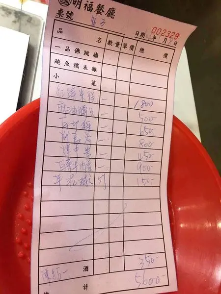 明福餐廳的佛跳牆號稱是全台最強,但價錢也是數一數二地高,最小份量的佛跳牆要3300元,最大的則是9900元,而且是需要提前預約才吃得到,這次因為是臨時決定要吃這家,所以也就沒機會吃到佛跳牆了!>___<
