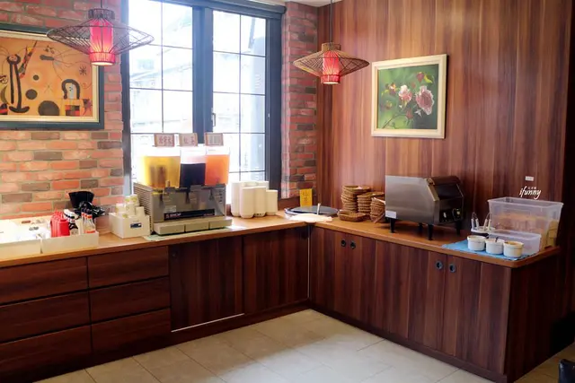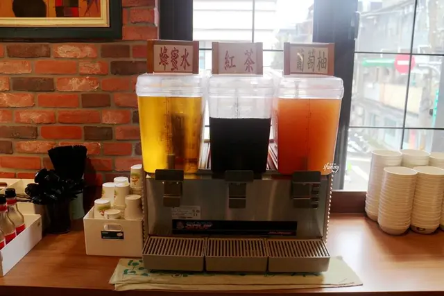 飲料機有三種飲品,這天艾方妮都喝蜜茶,不致過甜的滋味搭配餐點頗為合適。