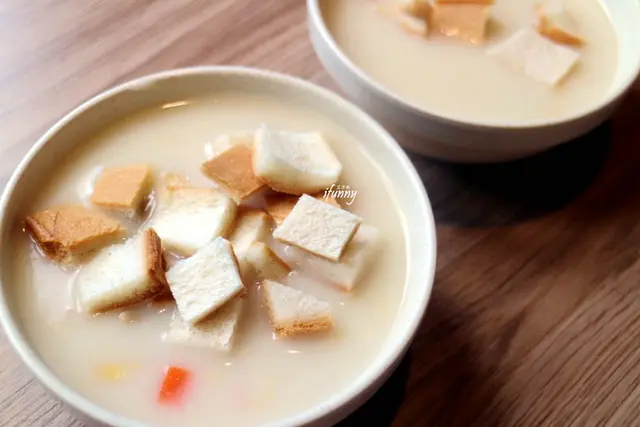 這自取的玉米濃湯的料可是一點都不馬虎,隨便撈都是一堆料。搭配上麵包丁口感更是不錯呢!