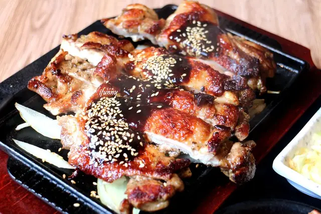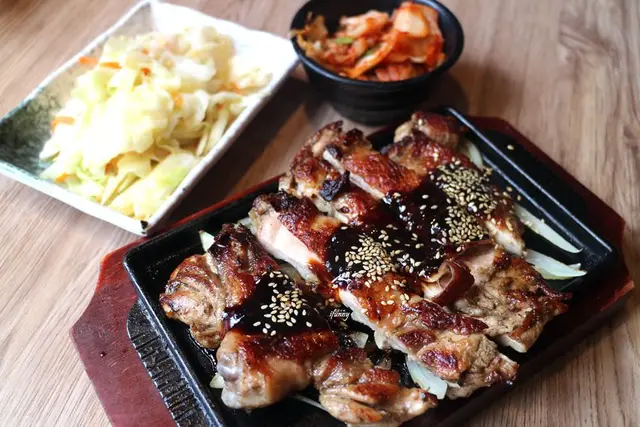 這個以鐵板呈現剛料理好的雞腿排,一上桌的香氣逼人,金黃酥脆的模樣真是令人食指大動啊!