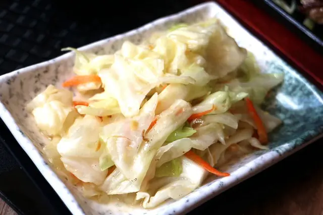 這就是一般鐵板燒常吃到的高麗菜,炒得清甜脆口,好好吃喔!