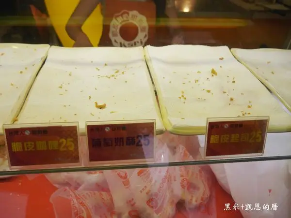 奶油、花生、紅豆、奶酥、巧克力、芋頭、脆皮咖哩、葡萄奶酥、脆皮起士、脆皮番薯、脆皮酸菜
