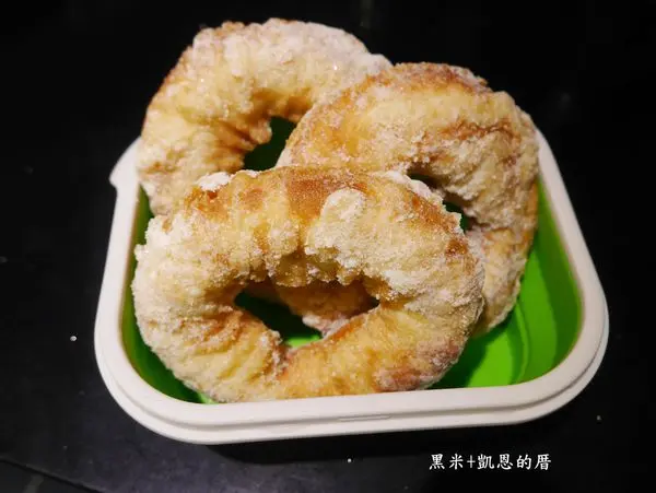 甜甜圈外皮脆脆帶有烤滋烤滋聲,小米很喜歡這脆脆口感