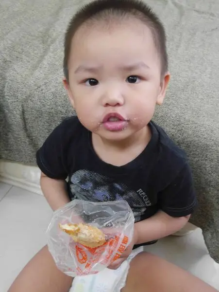 甜度不高,一口咬下後感受到奶香與麵粉香