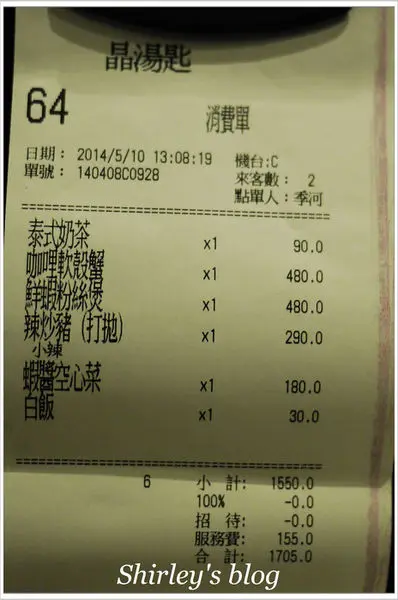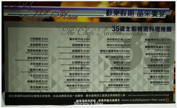 晶湯匙泰式主題餐廳‧台北京站店 Shirley幸福部落等級42016-09-04747 瀏覽 關注 103/05/10 晶湯匙泰式主題餐廳 京站分店才剛重新裝潢 新裝潢新感受 依舊是低調奢華風格 menu 有雙人、三人、四人...套餐 套餐較為划算,但指定菜色不能更換, 大人有矚意的菜色,我們只好採用單點 泰式奶茶90元 白飯每人30元 蝦醬空心菜180元 辣炒打拋豬(小辣)290元 最是下飯的一道菜色 鮮蝦粉絲煲480元 粉絲吸附湯汁,實在夠味 咖哩軟殼蟹480元 大人想吃香辣蟹或咖哩蟹類 餐廳只有軟殼蟹 蟹經過油炸,吃來有點油膩,可惜!我們都口咬一口即放下 麵包用來沾附醬汁食用 1705元/2人 以上食記乃用戶個人意見,並不代表OpenRice之觀點。讚好分享晶湯匙泰式主題餐廳‧台北京站店 晶湯匙泰式主題餐廳 京站時尚廣場 https://s.openrice.com/cHRTm02oKm100檢舉 張貼 評分4味道3環境4服務4衛生4CP值用餐方式內用