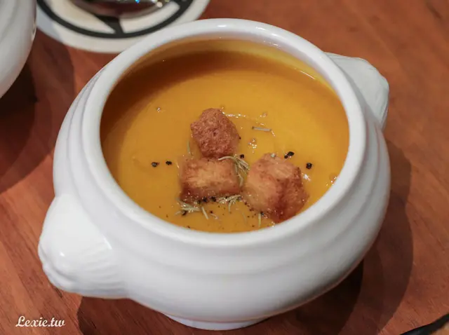 喝得出來是真材實料的南瓜湯,搭配豆乳香甜滑順,還有搭配幾塊麵包來增添口感。