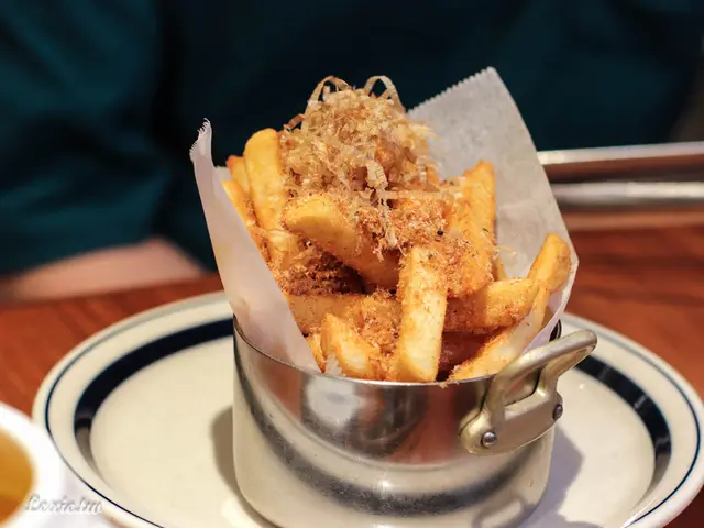 剛端上來的時候柴魚片遇上現炸薯條的熱氣,還會開心的手舞足蹈飄來飄去的,也多了點日式風味。柴魚片香氣濃郁,配上七味粉,是香脆涮嘴的開胃小點。