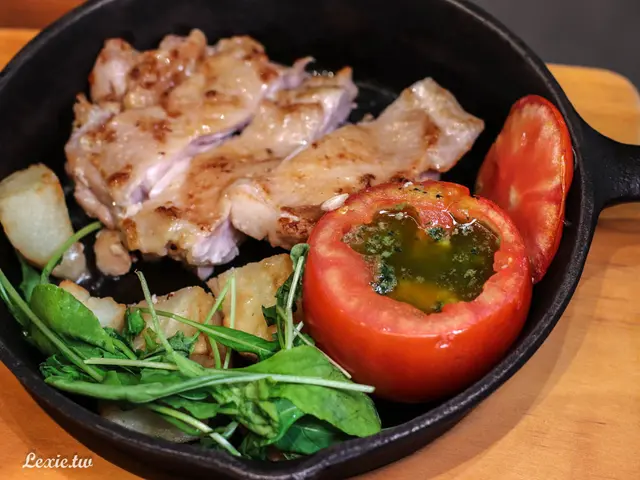鹽焗雞腿排佐鮮番茄羅勒奶油