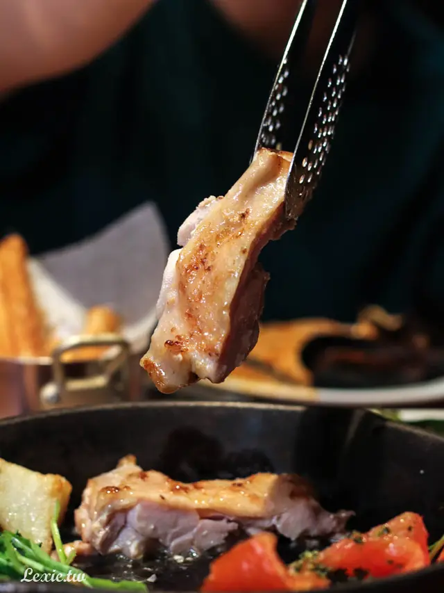 雞腿肉吃得出來是使用成本不低的雞肉,平平是腿肉,好不好差異還是可以到很大的。入口就能嘗到一抹濃郁的鹽焗香,咬下雞肉非常多汁鮮嫩,且完全沒有任何腥味,越嚼越香,是超出我預期的肉質。但我們都覺得皮如果可以煎的焦脆一點並提出雞皮香氣,應該可以更出色。