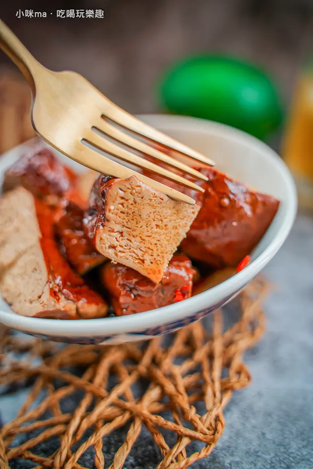 豆干帶著Q彈口感,一口咬下超juicy,跟一般吃到滷豆干完全不同,這個根本就是爆漿豆干啊