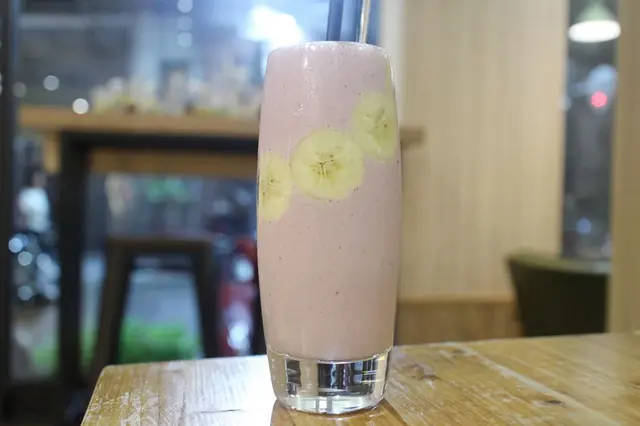 你看看這杯香蕉切片還呈現曲線在藍莓牛奶裡~~~已融化❤️