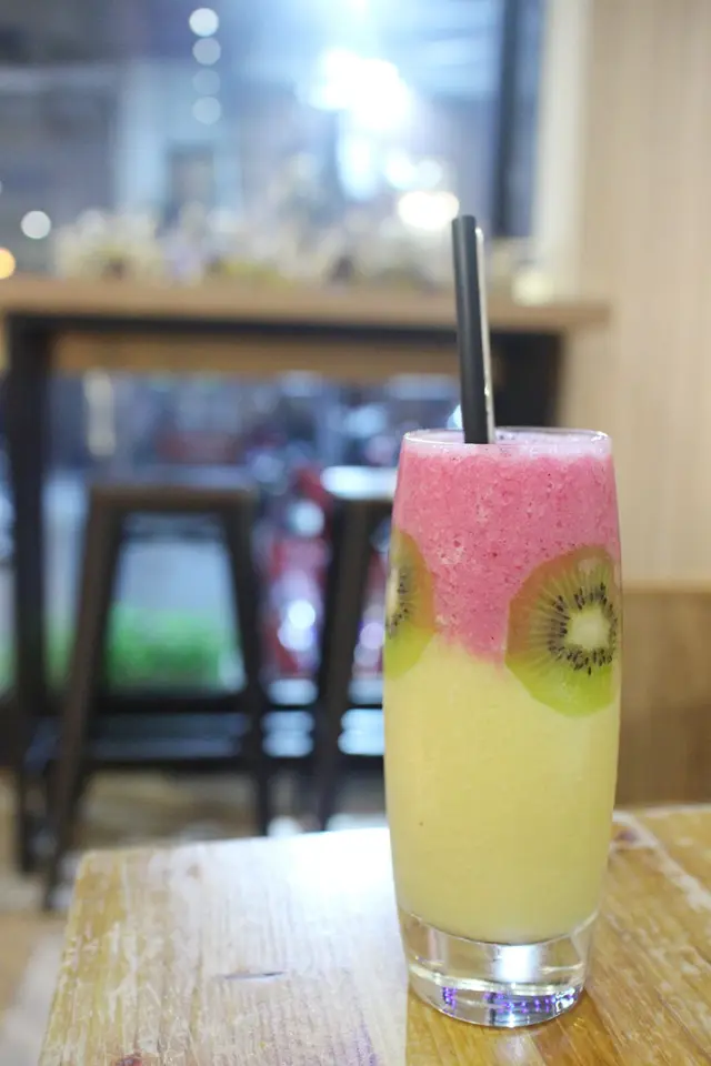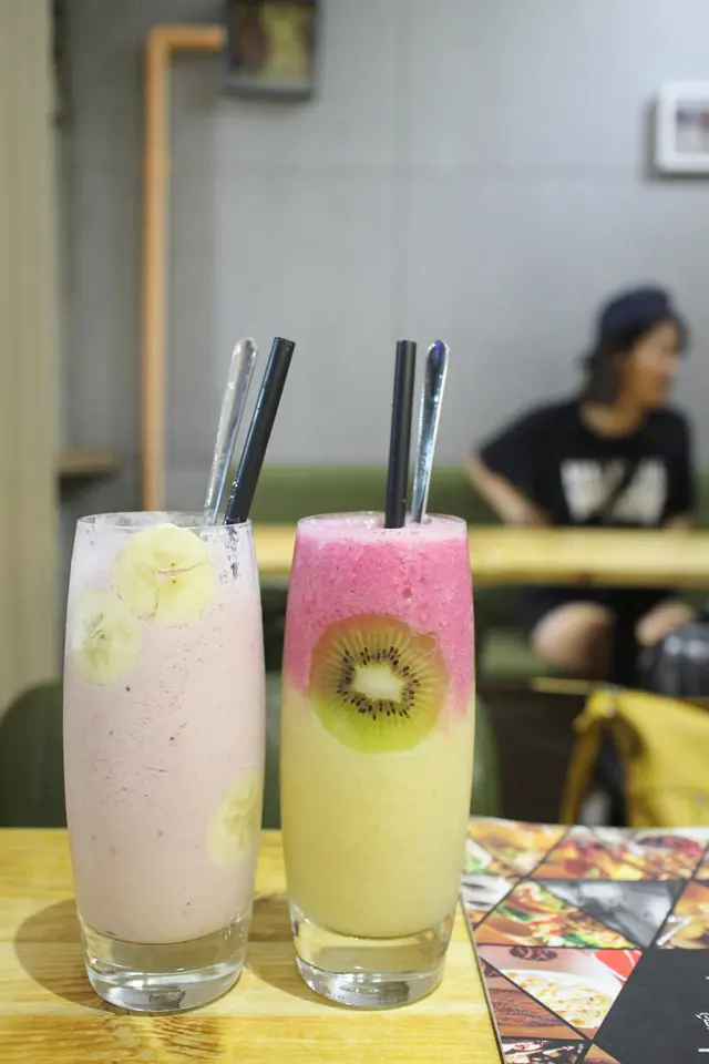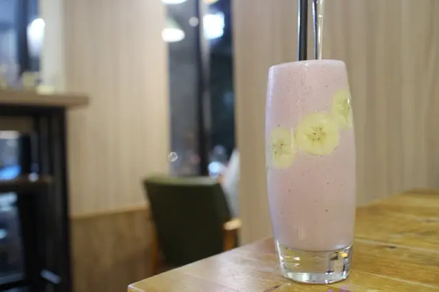 藍莓的風味濃郁,搭配香甜的香蕉和牛奶打成果汁,豐富的青花素及熱量,而且這價位來說,現榨果汁CP值很高