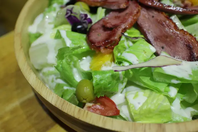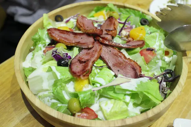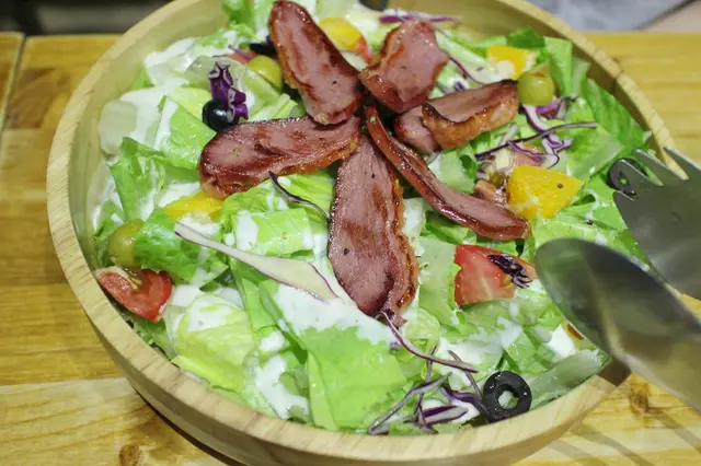 淋上凱薩醬的鴨胸沙拉,這一木碗的份量也相當驚人,鴨胸經過香煎後的口感帶硬度很有咀嚼感,下次來我會想繼續點這一道