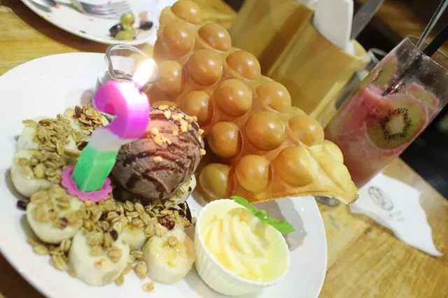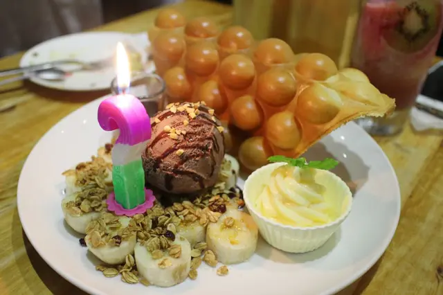 就是它啦!!可以讓蠟燭安穩坐在甜點上,因為直接插入香蕉切片裡,店員超可愛還用眼神示意我可不可以上甜點了,老闆請加薪,謝謝