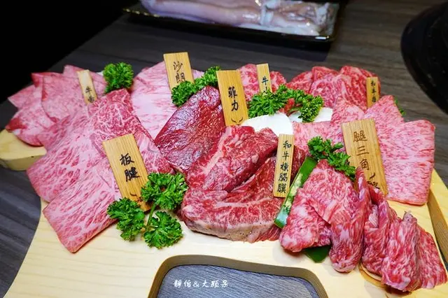 我們點的是菜單上沒有的隱藏版一頭牛拼盤,一端上桌讓人相當驚艷,這肉的份量也太讓人滿意,而且油花色澤太逼人了,還是用牛造型木盤盛裝,當然要先拍照打卡啦~