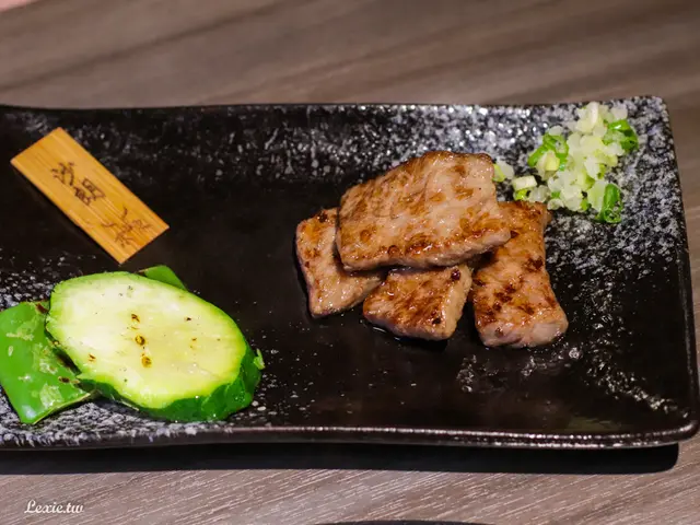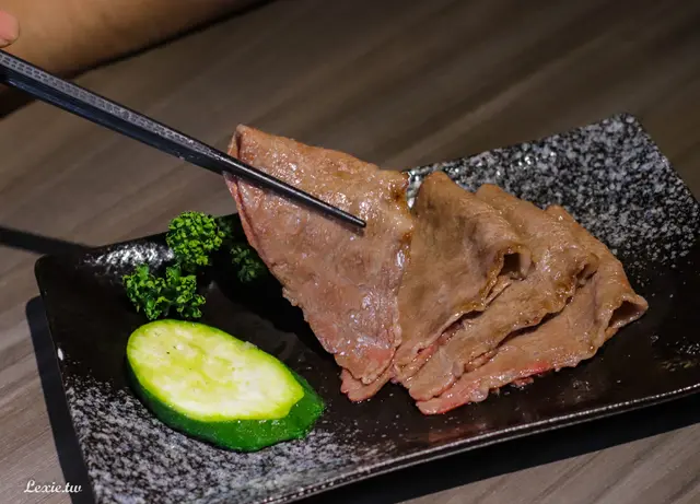 吃完脆口的牛舌,就來了第一道日本和牛背肩,背肩是油脂含量很高的部位,肉片嘗起來十分滑順、柔嫩,多汁又油香滿溢,果真是和牛的肉質,一片升天。