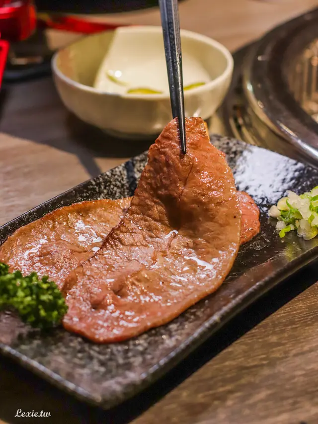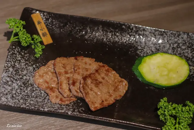這是牛舌中段部位,現場也有限量提供厚切牛舌。中段牛舌烤起來甜脆帶勁,又不失水潤彈牙肉質,一開始就放煙火~