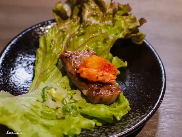 再加上一點點泡菜就變成韓式吃法了XD,雖是如此但我還是建議大家如果耐油度高的人其實不需要搭配生菜,單獨品嘗他油脂的豐沛與甜度。