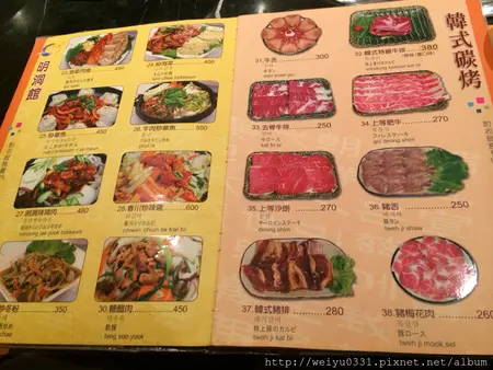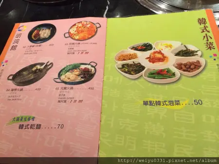 打開菜單種類繁多,可惜Ethan加上好友總共才兩人,沒辦法大快朵頤,可是說實在已經吃很飽了其實,有鍋類、餅類、燒肉,根本不開玩笑。