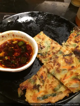 料超多超豐盛的海鮮煎餅,配上店家特製的醬料,很開胃也很滿足,重點是真的太飽了最後居然吃不完(殘念)