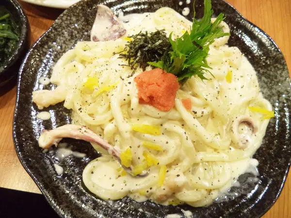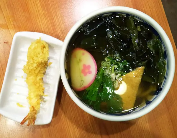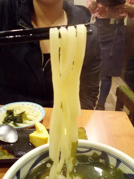 而我們點的這道讚岐烏龍麵~他的湯頭是用昆布去熬煮的,喝的出湯頭清澈鮮甜