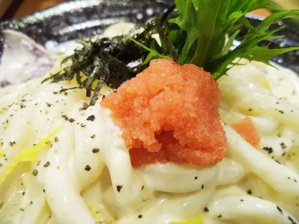 完全跳脫傳統日式的調味~結合義式奶白醬,濃郁的口感加上魚子醬的鹹香,穿插些許的柚子皮增添香氣