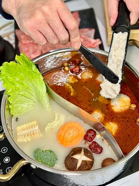 我們挑了「招牌麻辣+大漢蒙古湯底」組成鴛鴦鍋來嚐嚐!