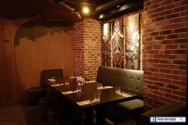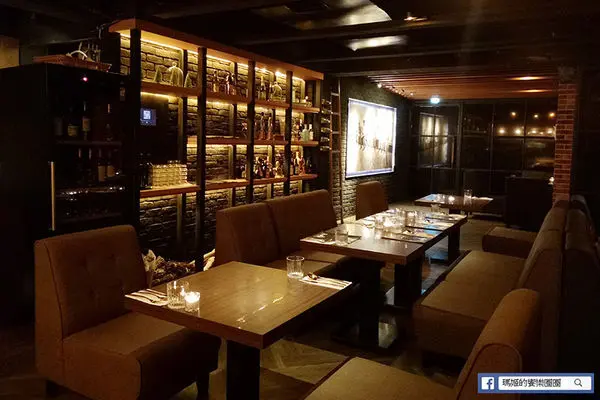 進了店裡那種神秘的氛圍依然籠罩,室內燈光是昏暗,僅以黃色鎢絲燈做照明,吧台的正前方做是沙發座位,可以很放鬆的就像在家裡一樣用餐喝酒,營造輕鬆不拘的氛圍。