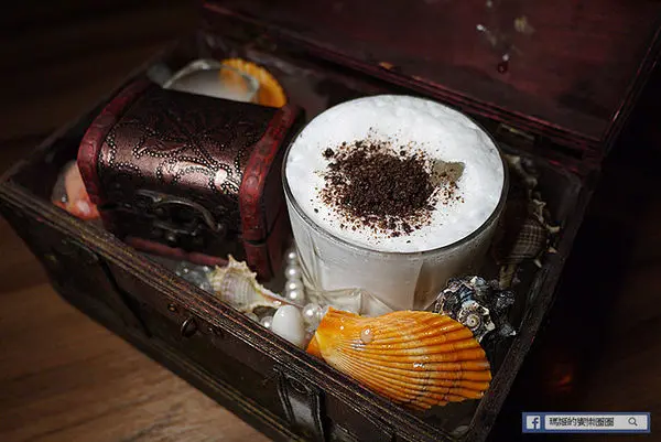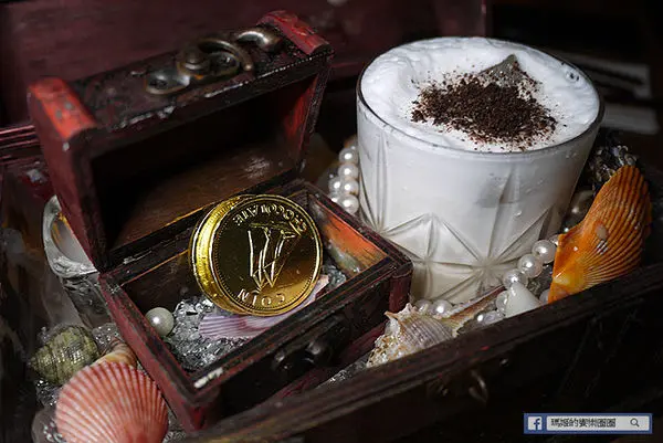 小美人魚的貝殼寶藏450元,有貝禮詩奶酒、榛果利口酒、巧克力利口酒和牛奶,喝起來有綿密的奶泡,口感香香甜甜奶味十足!是一杯女孩兒會喜歡的調酒。(未成年請勿飲酒/請勿酒駕)