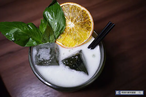 原本以為九層塔的香氣應該會佔據絕大值,但啜飲一口發現比較像青蘋果的味道,味道清新怡人,店家應該是看我們都是女生而推薦適合女生的調酒給我們,若不知要喝什麼不妨請服務人員給建議哦!(未成年請勿飲酒/請勿酒駕)