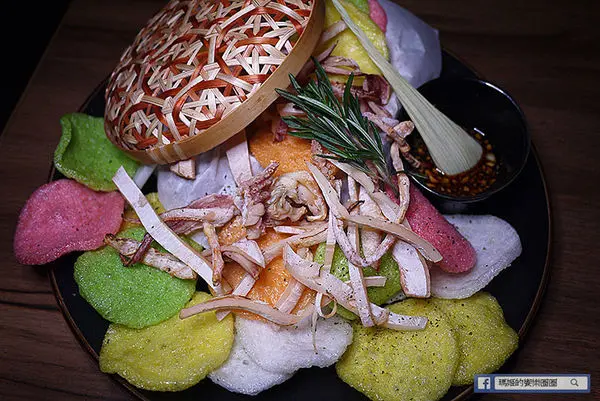 還利用竹篩來呈現擺盤視覺效果,十分有創意!