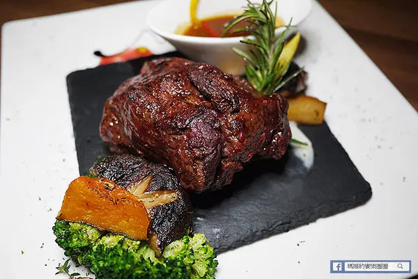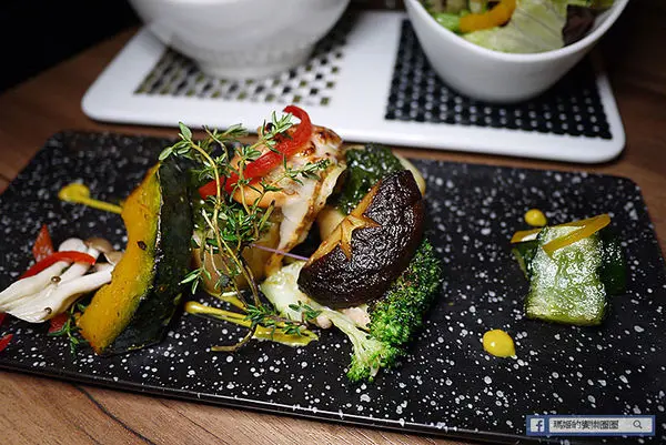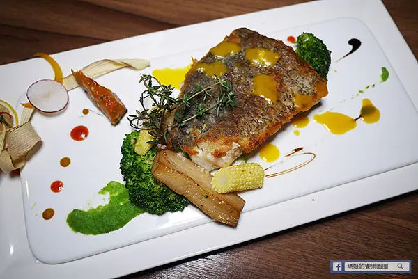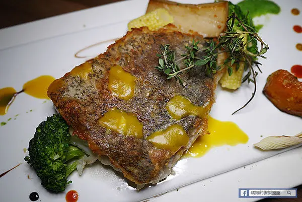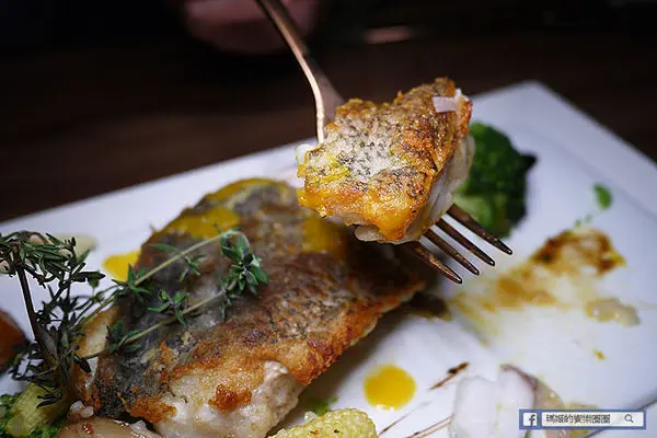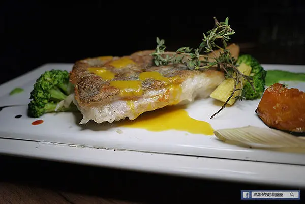 烤過後的石斑魚肉質鮮嫩又細緻,經過爐烤後的皮脆而且毫無土腥味,黃檸檬豌豆醬是這道料理的亮點,帶有微酸的口感更顯魚肉的甜味。