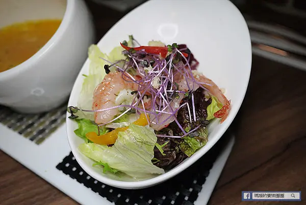 沙拉搭配的醬汁是帶有清爽微酸的巴撒米克醋,融入其中特別對味!