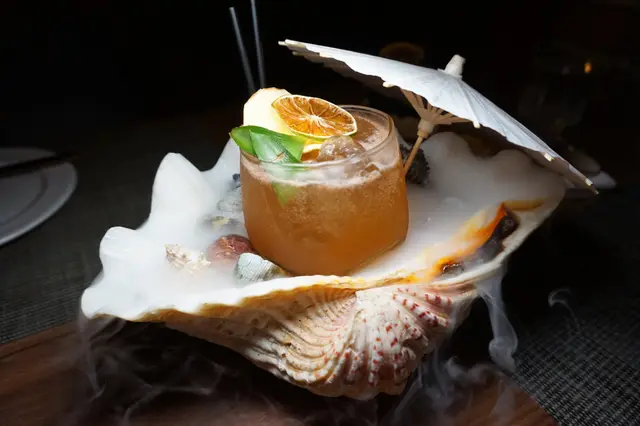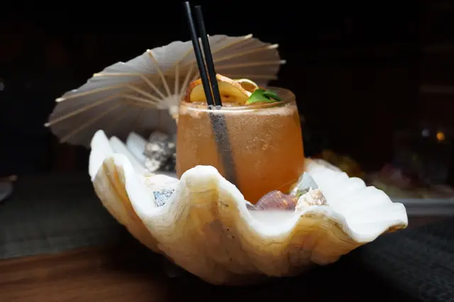 這杯使用整顆大貝殼上桌